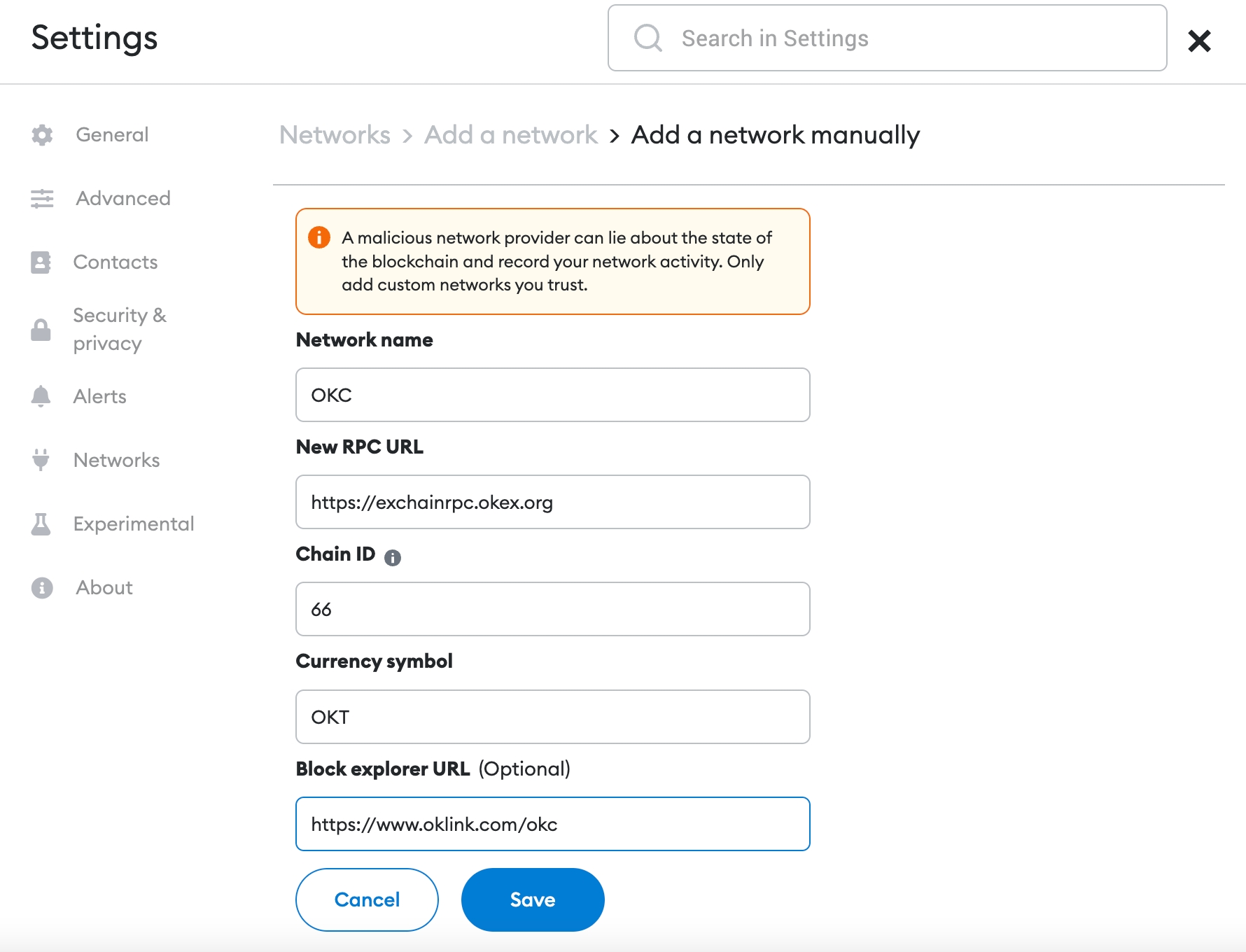 The OKX Wallet supports multiple chains and will already be compatible with the OKTC network by default, no further configuration required.